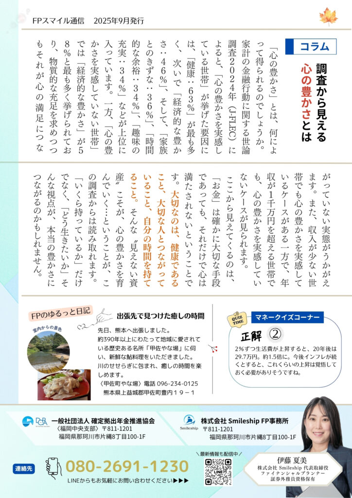 気軽に読めて役立つ「マネー情報」をお届けする【FPスマイル通信】がスタートしました。