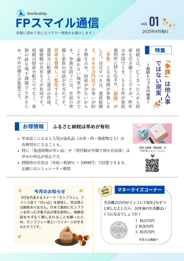 FPスマイル通信 9月号(Vol.1)を発行しました!