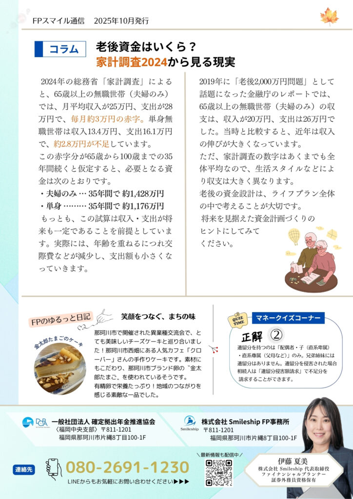 暮らしに役立つお金の情報をお届けする「FPスマイル通信」を毎月発行しています。